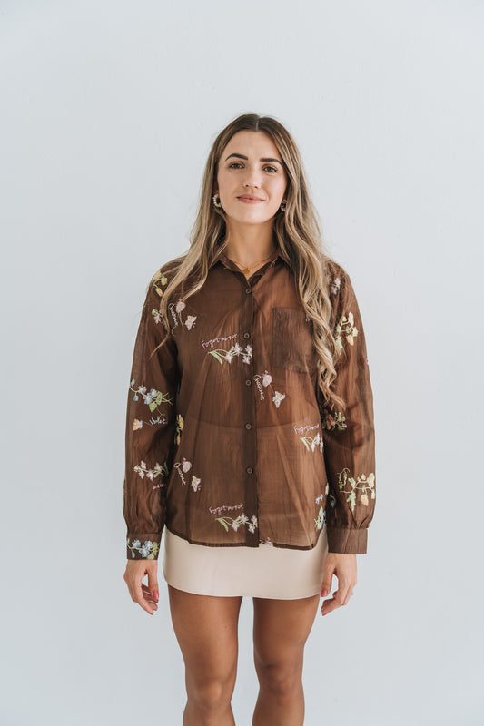 Dahlia Blouse Brown | Available in Sizes S, M, L