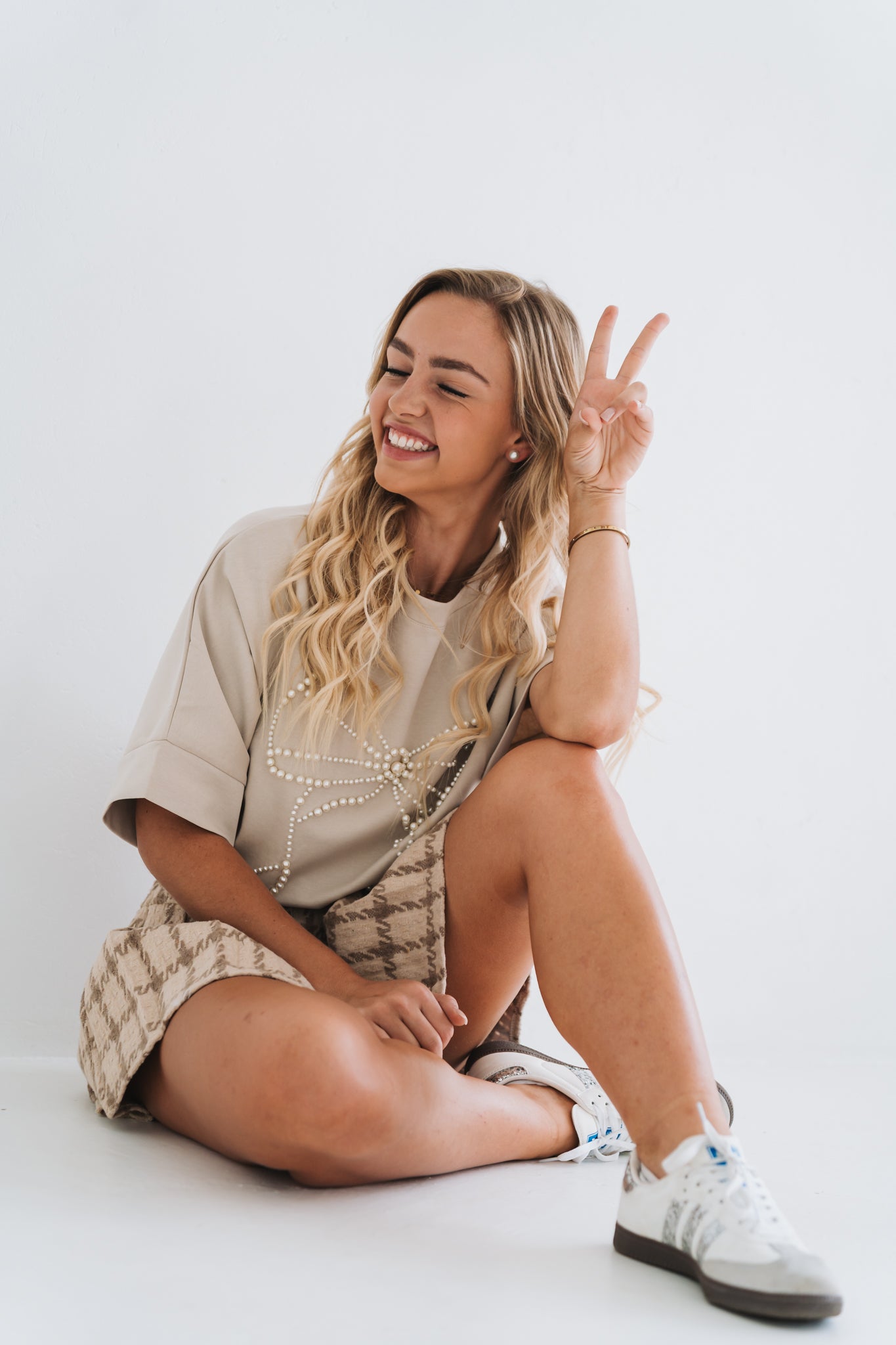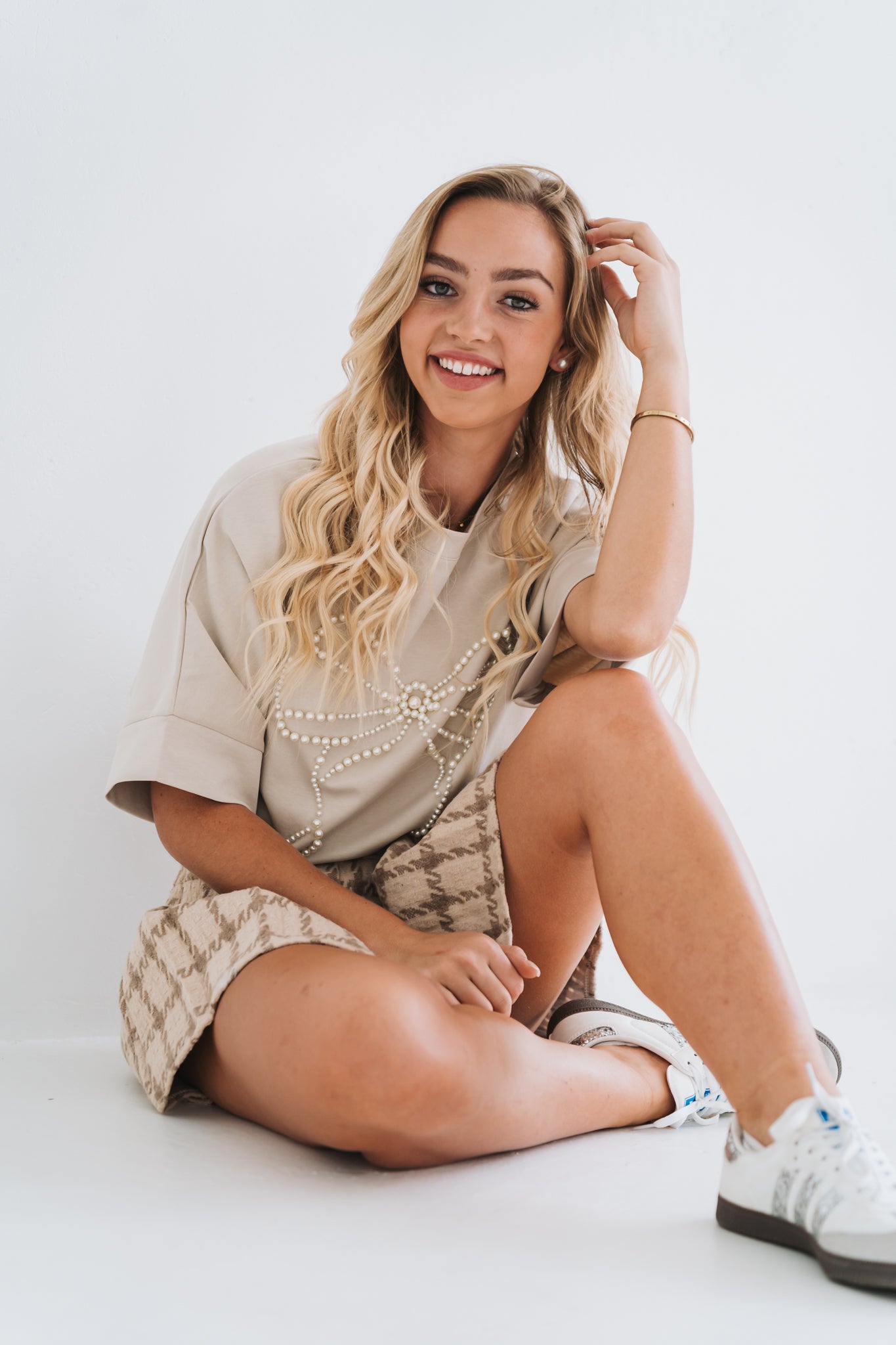 Pearl Bow Tee Beige | One Size / Fits 30-36